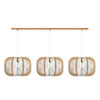 The trio of pendants of the DRUMJEE chandelier, each 42 cm in diameter, are hand-woven on a structure made of wooden arches. The elegant straight wooden band will subtly dress your ceiling. The height of the chandelier is fully adjustable, allowing you to adapt the height of the lampshades.
